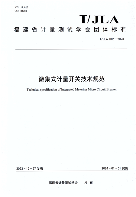 近日,福建省计量测试学会团体标准《微集式计量开关技术规范》完成团体标准制定流程,顺利通过专家审定,于12月27日正式发布。