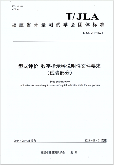 近日,福建省计量测试学会团体标准《型式评价 数字指示秤说明性文件要求(试验部分)》完成团体标准制定流程,顺利通过专家审定,于8月28日正式发布。