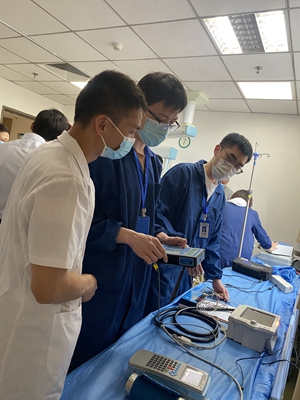 5月12日,省计量测试学会副秘书长、省计量院副院长姚进辉带领学会医学专委会的技术人员赴福建省立金山医院开展计量技术服务,现场免费检定医疗计量器具,其中包括呼吸机和多参数监护仪。
